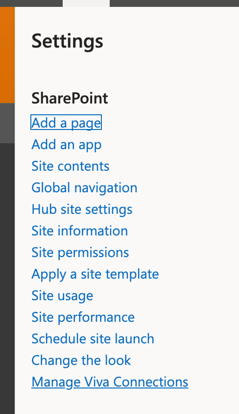 To edit the Viva Connections dashboard, from the new desktop experience for Viva Connections you can select edit right next to the dashboard, but if you haven’t got this experience in your tenant yet, you can simply go to your SharePoint home site, select the settings icon, and ‘Manage Viva Connections’.