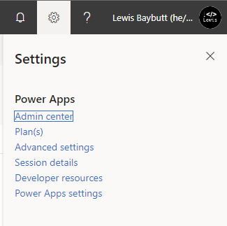 Select the settings icon in the menu bar at make.powerapps.com and then select Advanced Settings.
