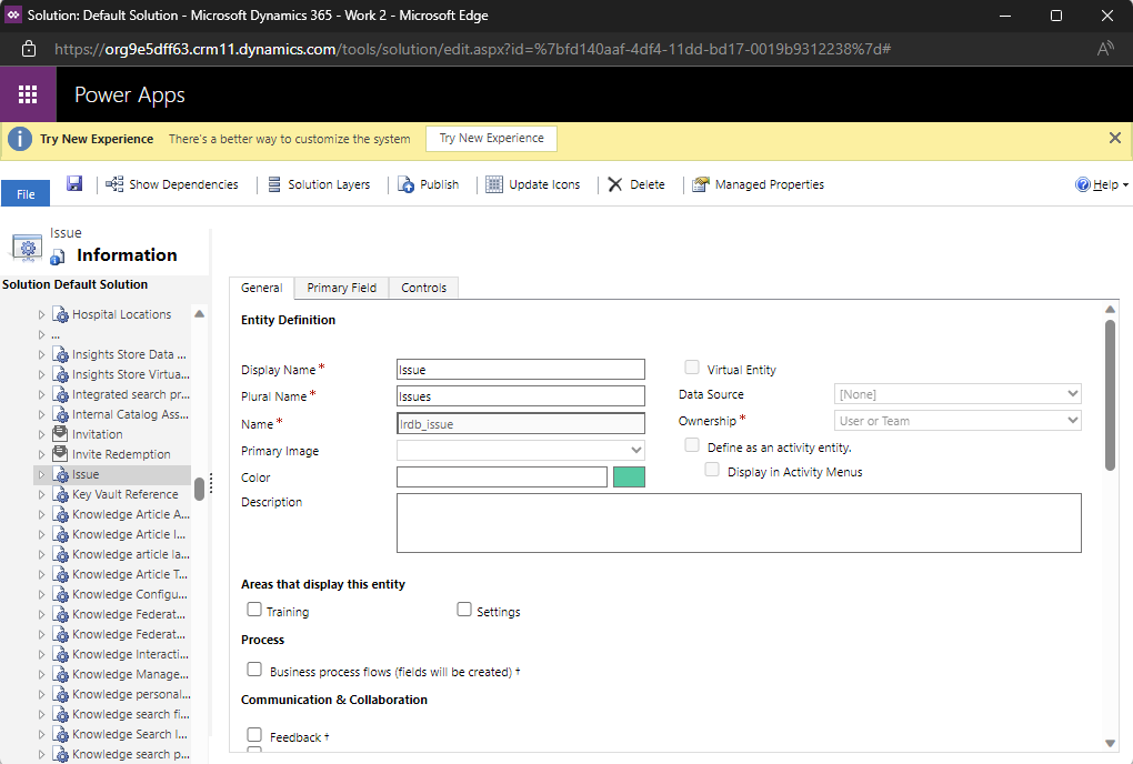 Now we need to make a configuration change to the table in the classic editor where we used to apply customisations to Dynamics 365.