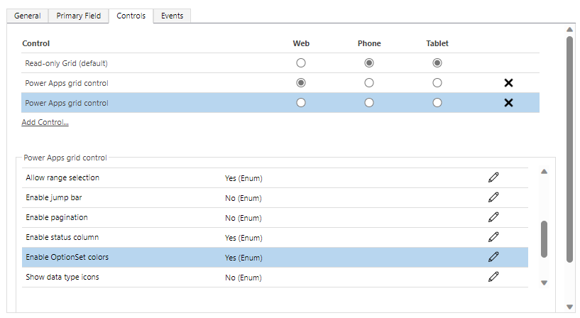 Now you’ll need to set the ‘Enable OptionSet colors’ property to yes so that the colours for choices show.