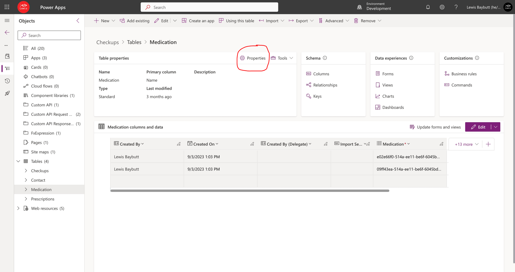Let’s look at how to enable connections for a table in Dataverse. Simply head to the table you want to make this change for at make.powerapps.com and open the properties for it.