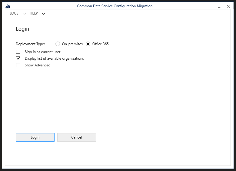Now I’m going to select to use Office 365 as the deployment type to login with and I’ll choose to display a list of my organisations.