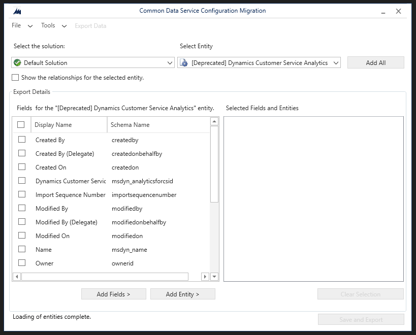 Here, I need to select the tables and fields I want to have data migrated for to create the schema which will include those tables and fields.