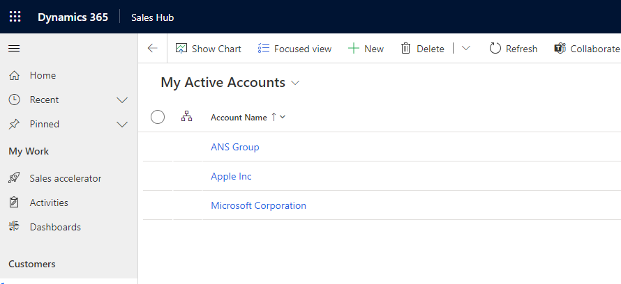 Now let’s see what my target environment looks like in the Sales Hub.