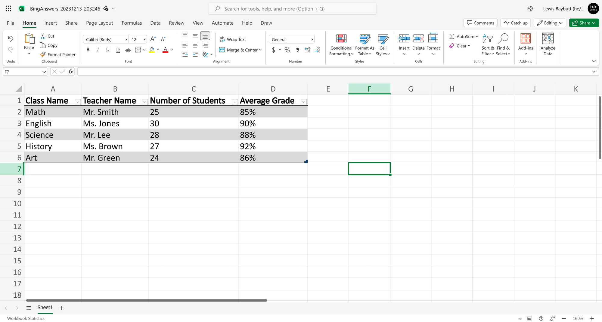 So Iโm simply going to upload this Excel file of data for classes in my school and their average grades.