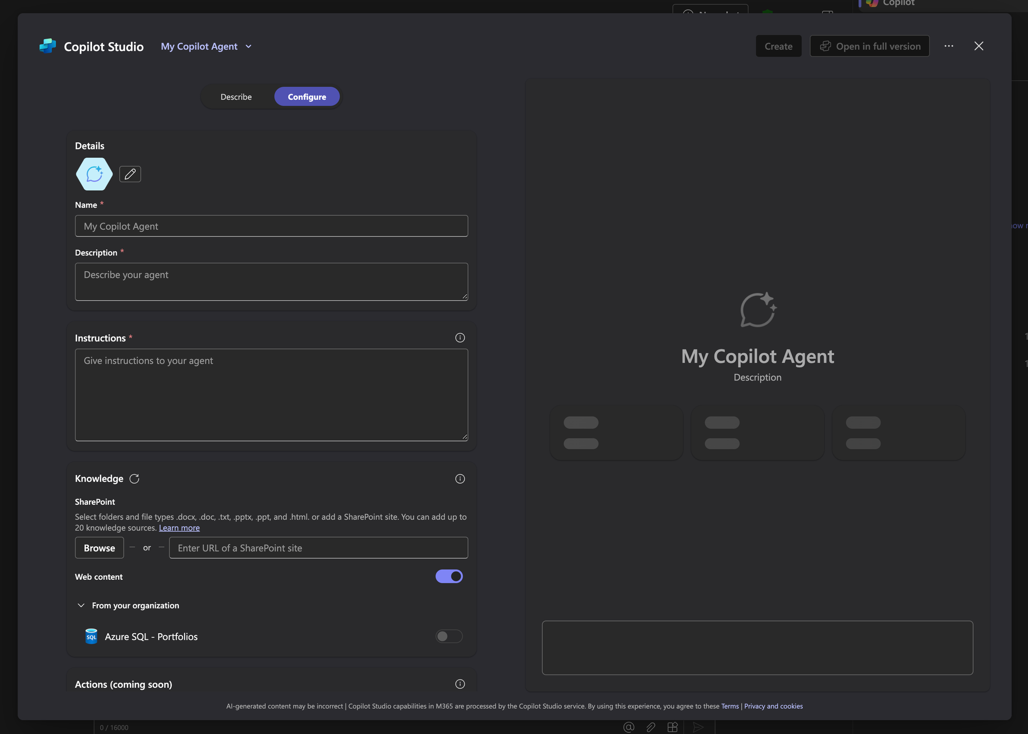 So let's take a look at how agents work in Microsoft 365 Copilot today, and since updates from Microsoft recently. As a user of M365 Copilot, I can create several simple agents using data from Microsoft Graph connectors, if I have access to connectors deployed by my organisation admins, as well as using data from SharePoint.