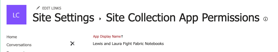 The additional thing we can do to check the permissions were assigned for the app, are to look in the site collection app permissions.