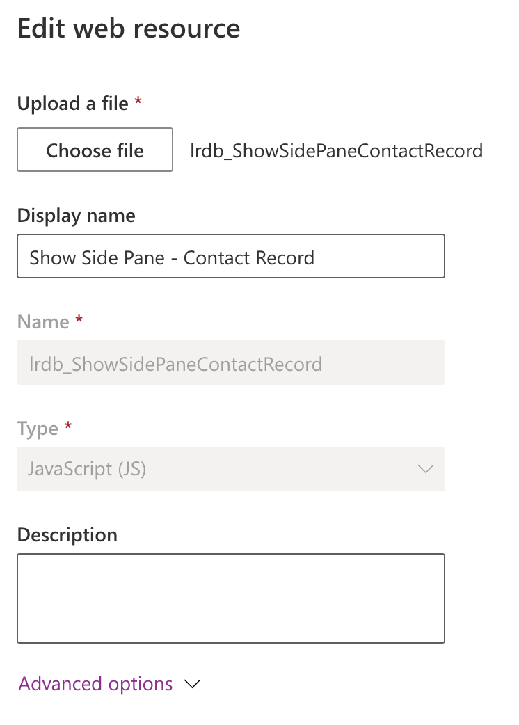 Now, head to a solution you are going to do your customisation in, and upload your JavaScript library containing this function as a web resource.