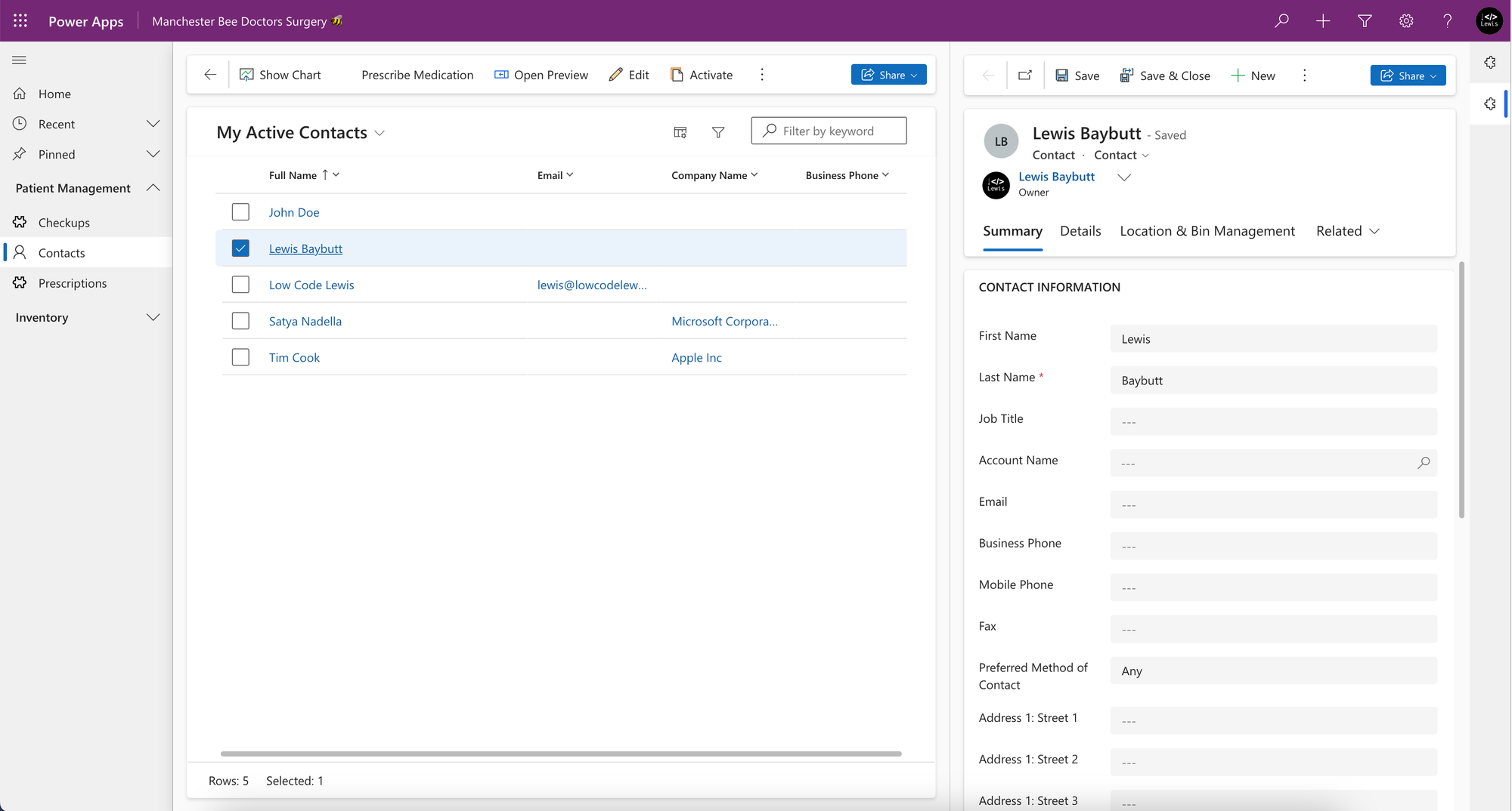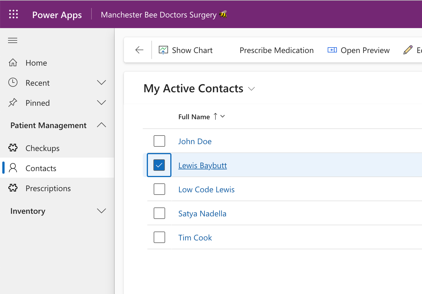 Now you can see that when I select a contact, I have my custom ‘Open Preview’ button. When I select this, I get a preview of the record open in a sidepane.
