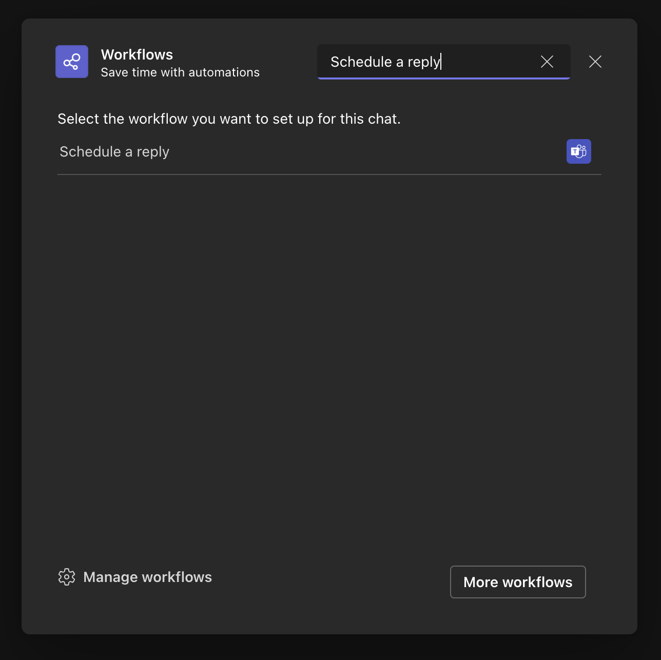 Next search workflows for the ‘Schedule a reply’ template.