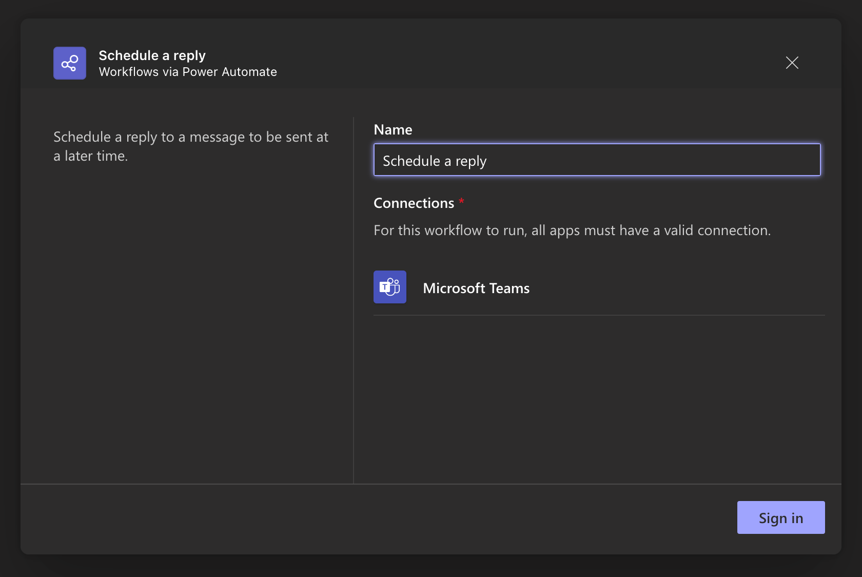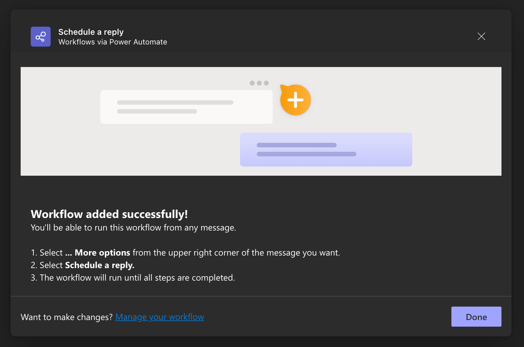 Now continue and add the workflow to Teams.